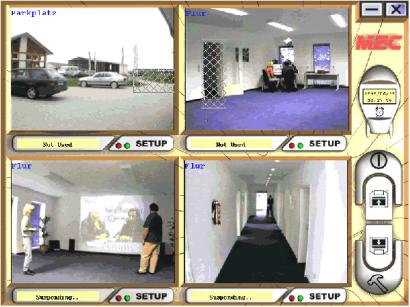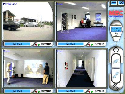 Das Kontrollmodul ermöglicht es Ihnen, vier angeschlossene Kameras auf einem Monitor darzustellen.Innerhalb der einzelnen Darstellungen können Sie beliebig viele Flächen mit der Mouse bestimmen, die aktive Alarmflächen sein sollen. Sollte jetzt innerhalb von der von Ihnen festgelegten Flächen eine Bewegung stattfinden, werden verschiedene Aktionen ausgeführt. Die nachfolgenden Aktionen können zusammen oder einzeln je nach Wunsch ausgeführt werden. |